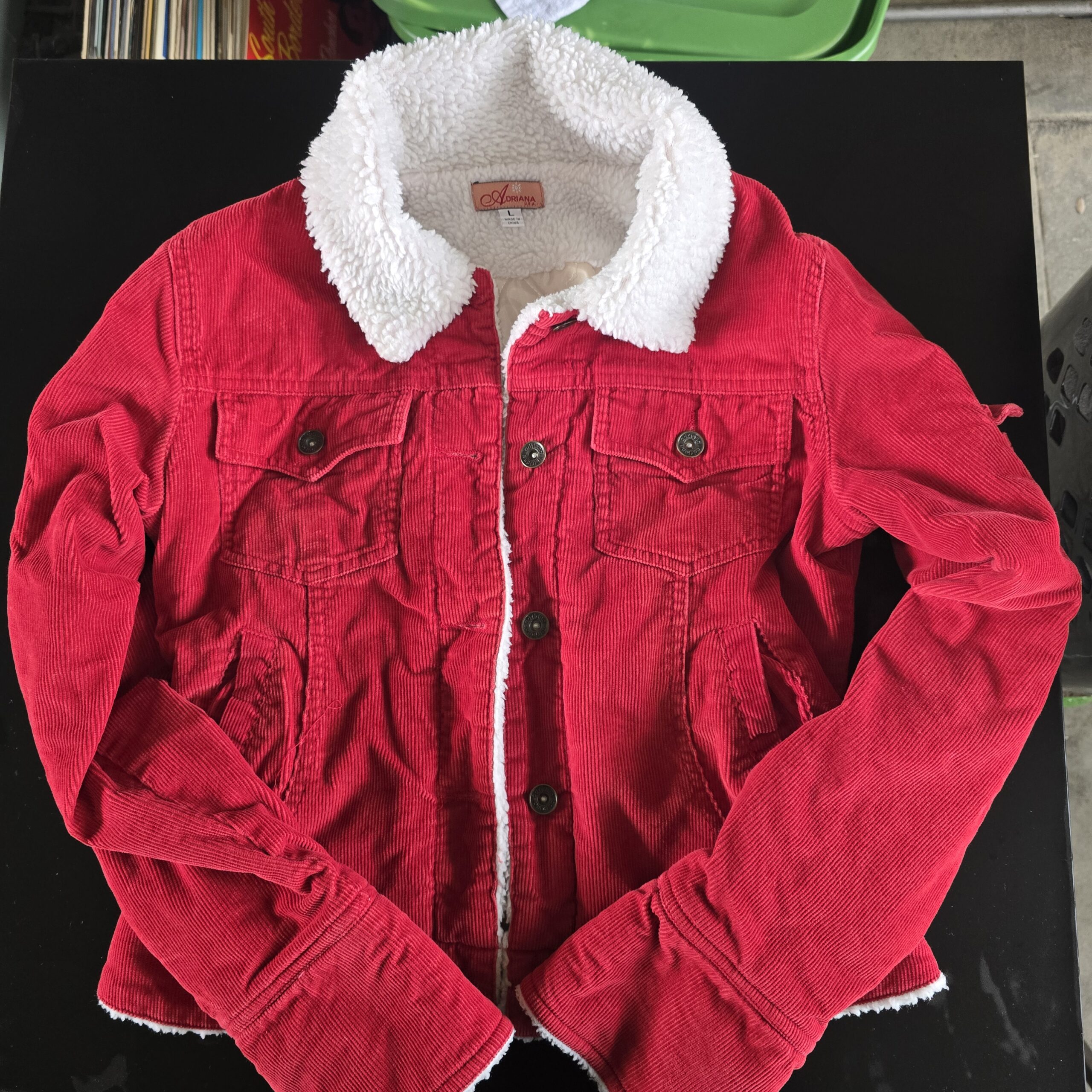 – Stay warm and stylish with this Arizona Red Corduroy Sherpa Lined Jacket, perfect for fall and winter wear.