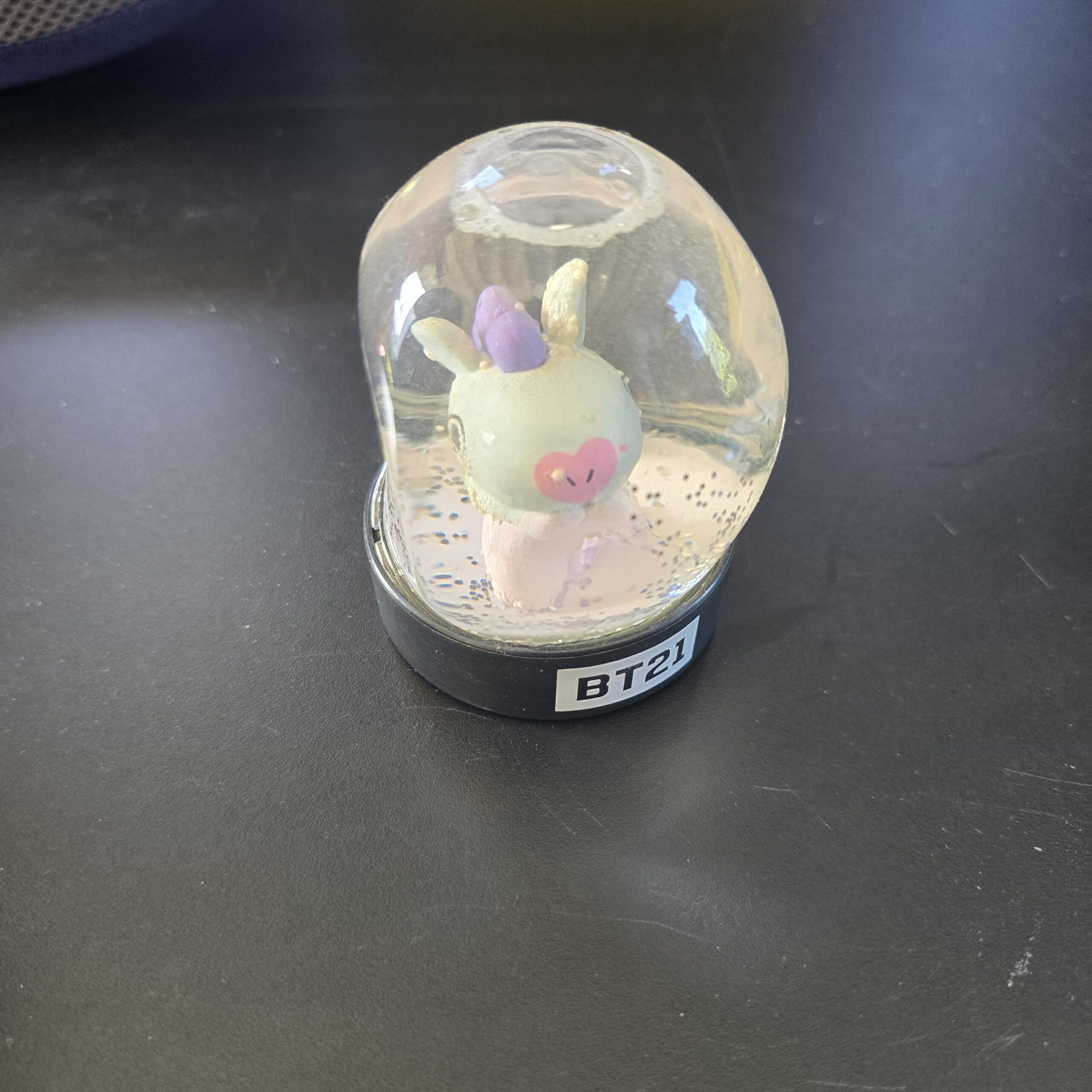 This BT21 character snow globe is a collectible item designed for fans of character and cartoon-themed merchandise. It is commonly used for decorative display or as part of a themed collection.