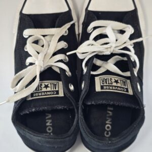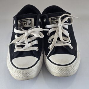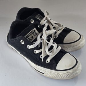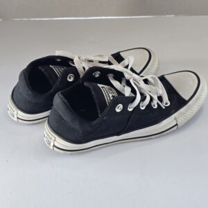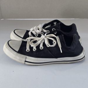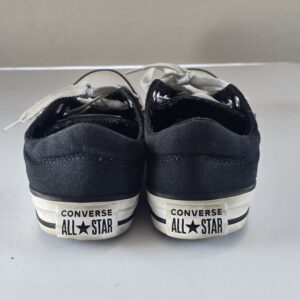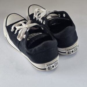 Classic Converse Chuck Taylor All Star low top sneakers in black and white canvas. A staple unisex casual shoe with retro styling and vulcanized rubber construction.