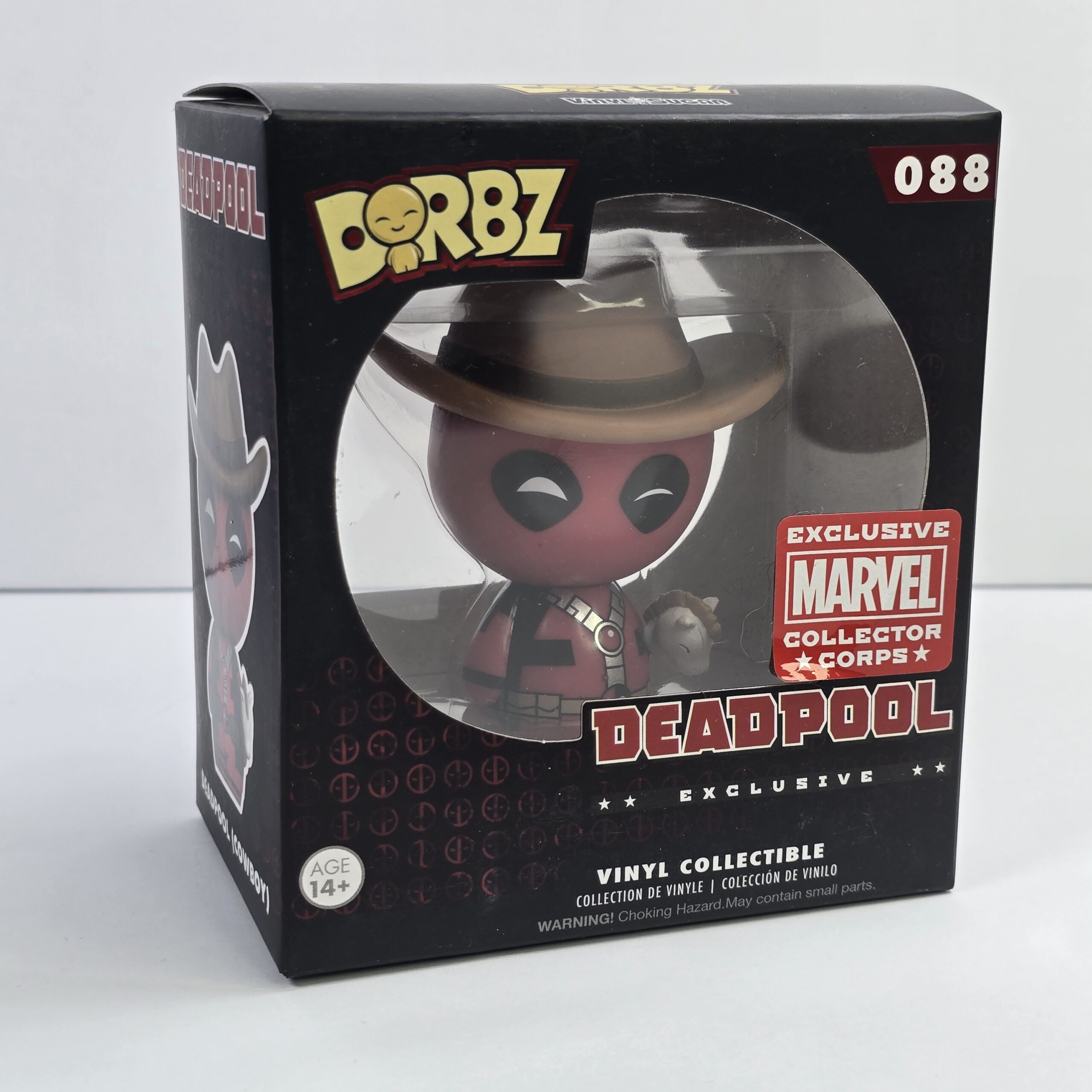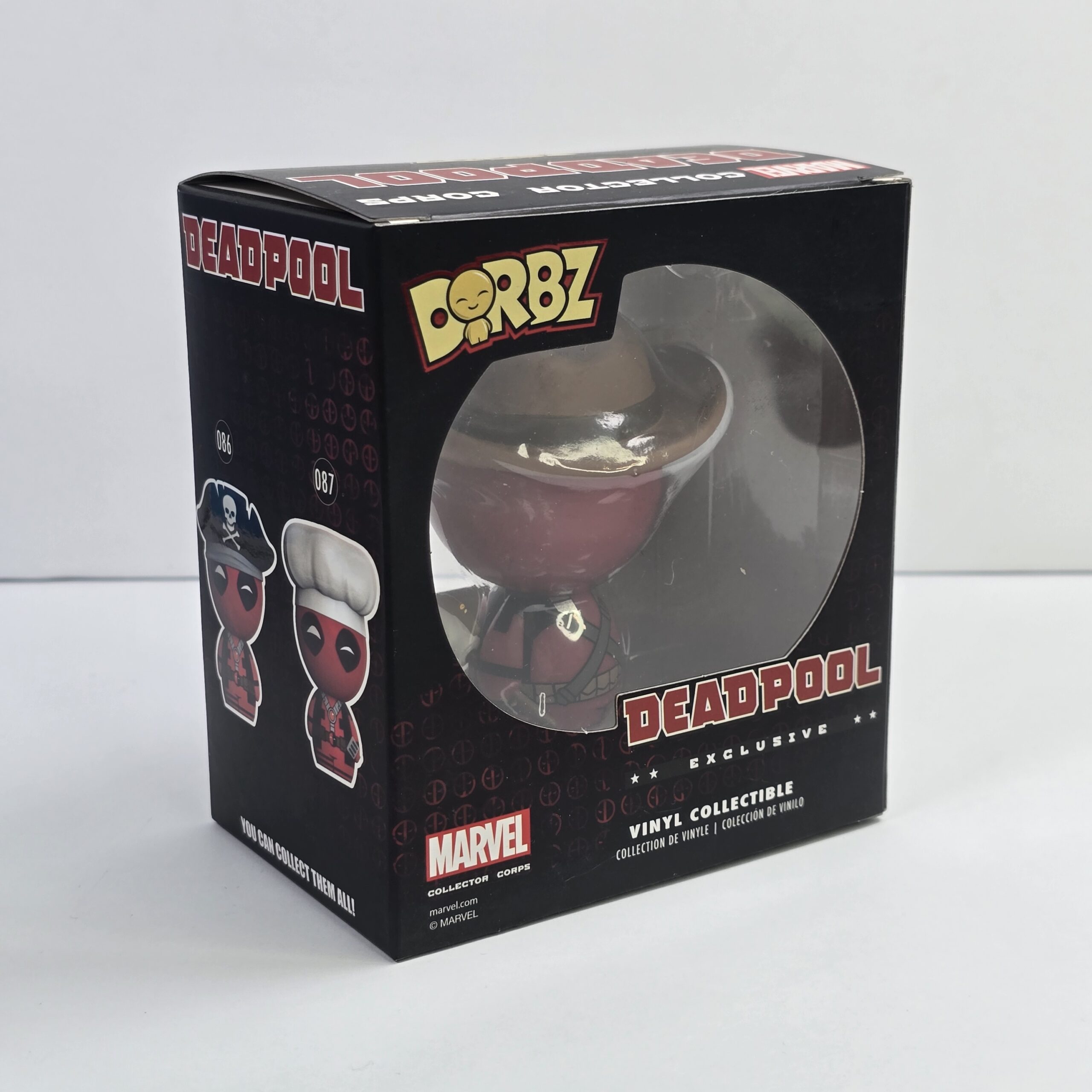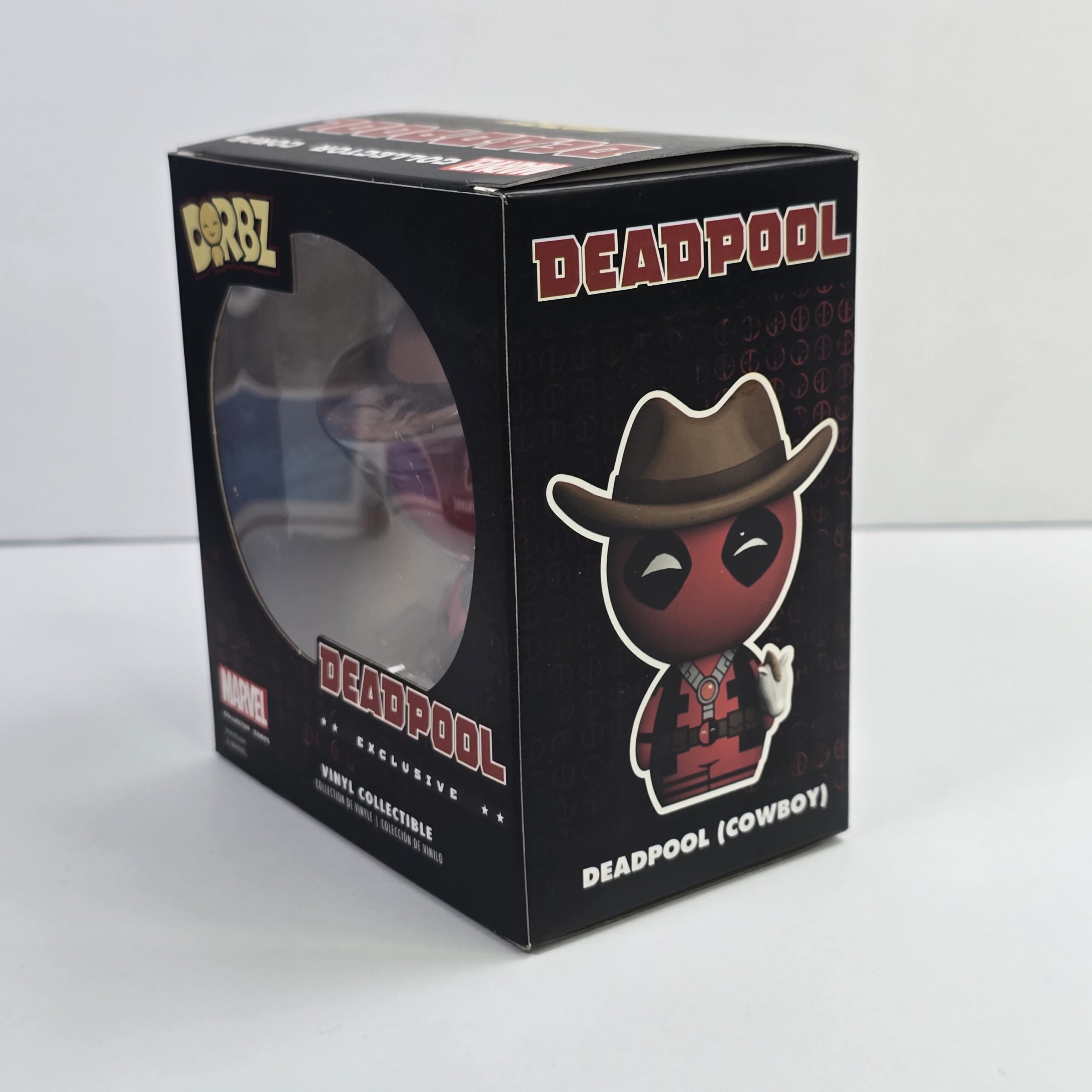 This collectible vinyl figure is designed for fans of Marvel and Deadpool, commonly used for display or fandom collections. It features distinctive character styling and is part of the Dorbz line.
