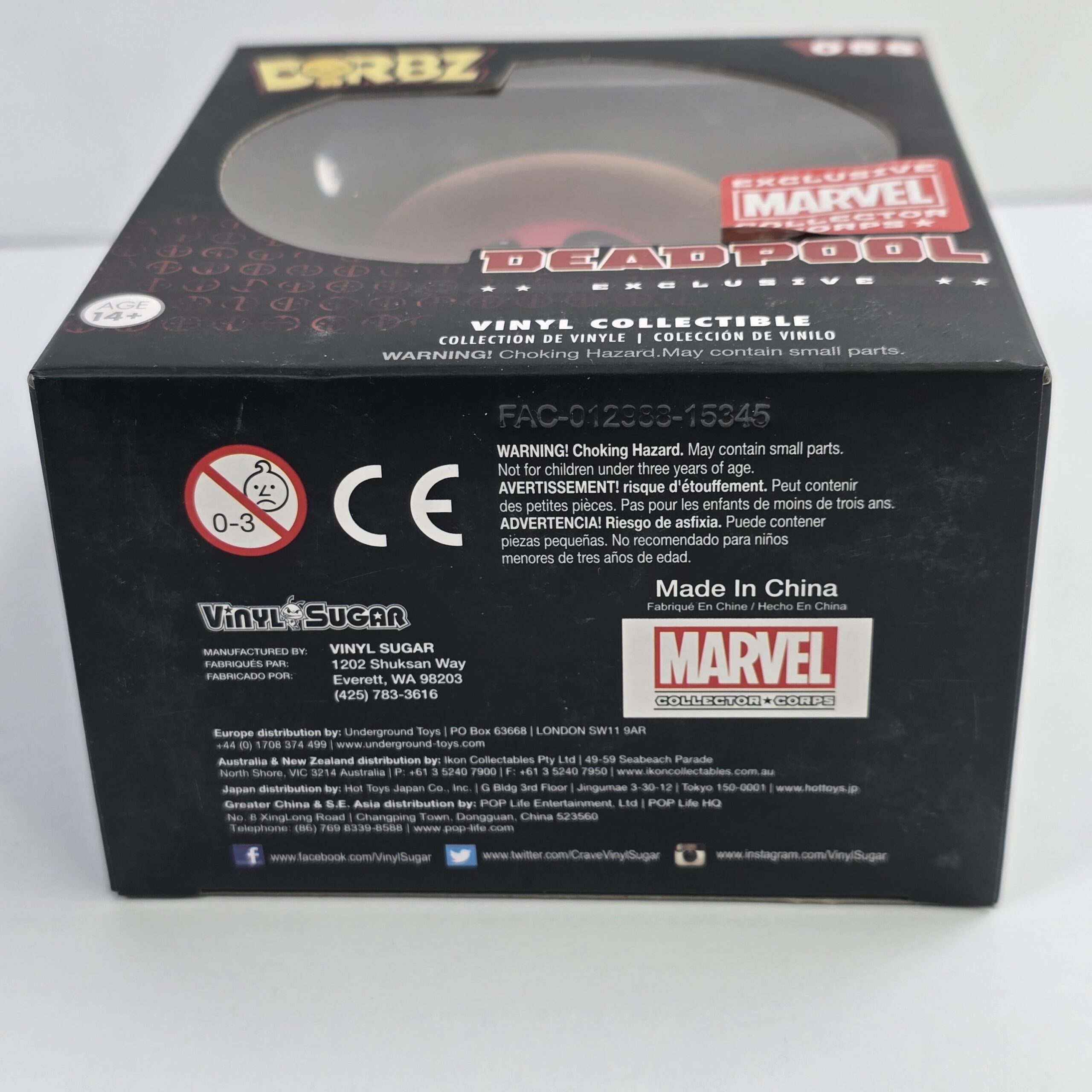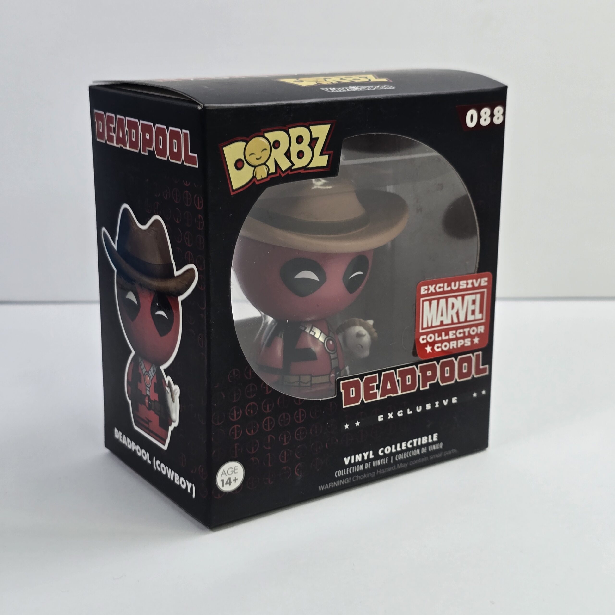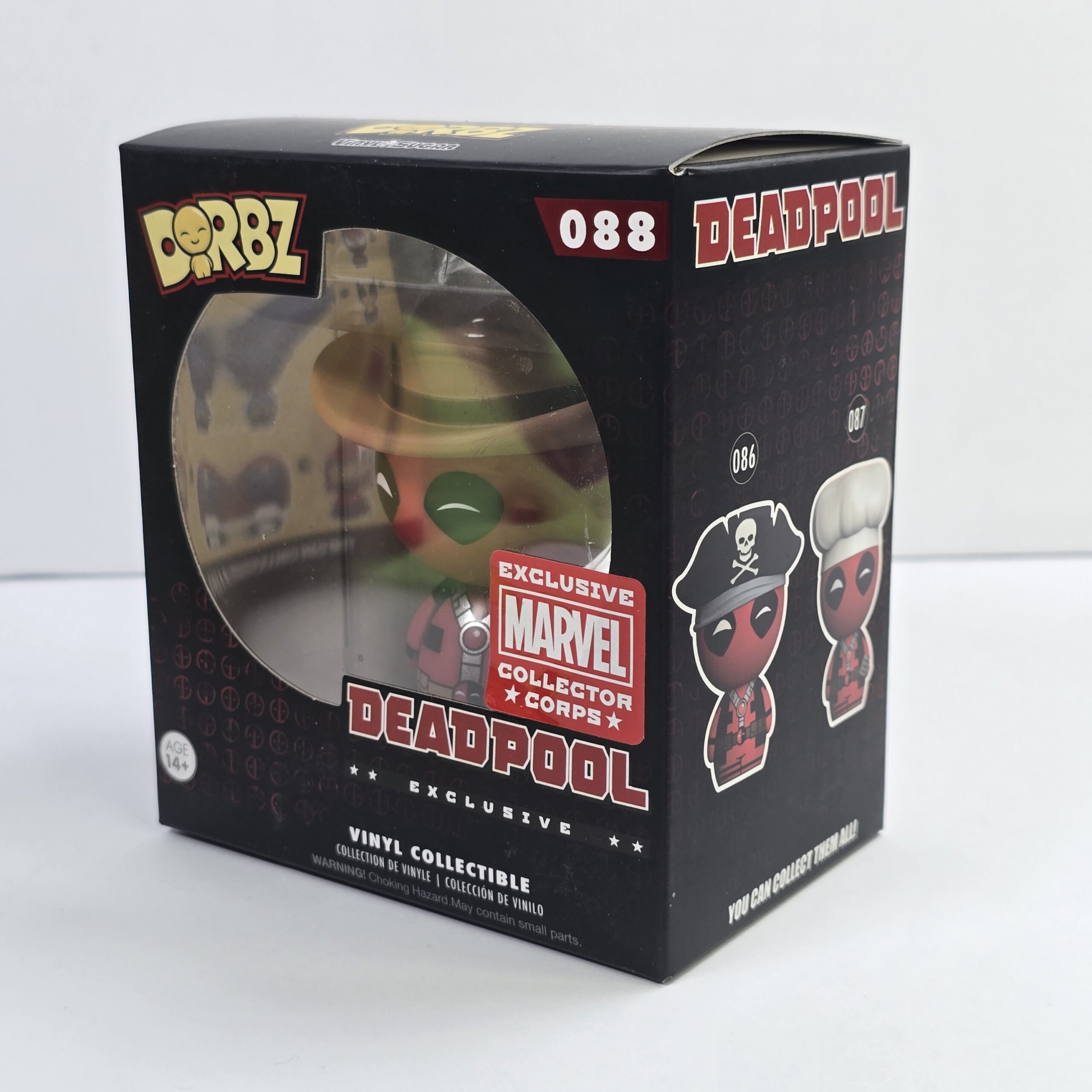This collectible vinyl figure is designed for fans of Marvel and Deadpool, commonly used for display or fandom collections. It features distinctive character styling and is part of the Dorbz line.