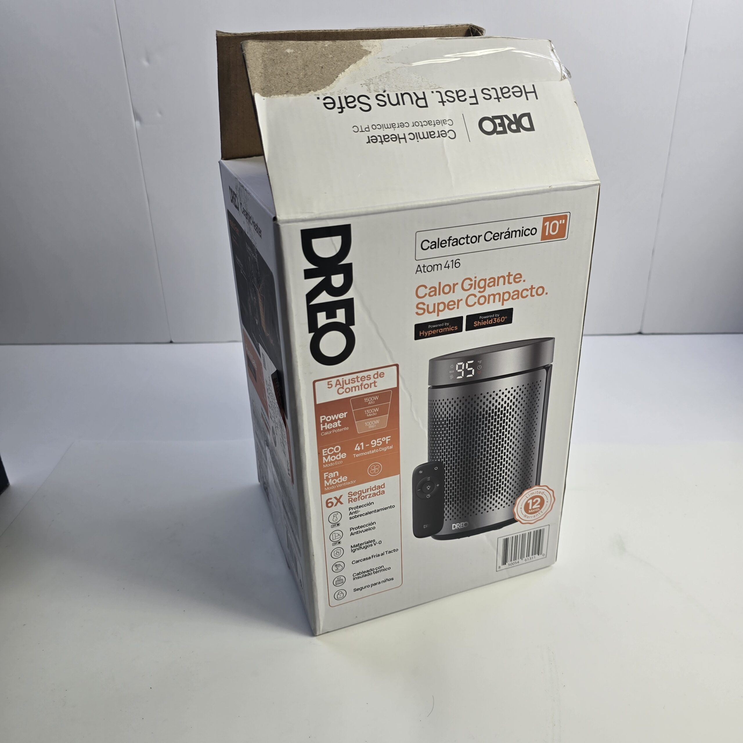 - Features: 5 Comfort Settings, Power Heat (1200W / 1000W / 900W), ECO Mode, Fan Mode