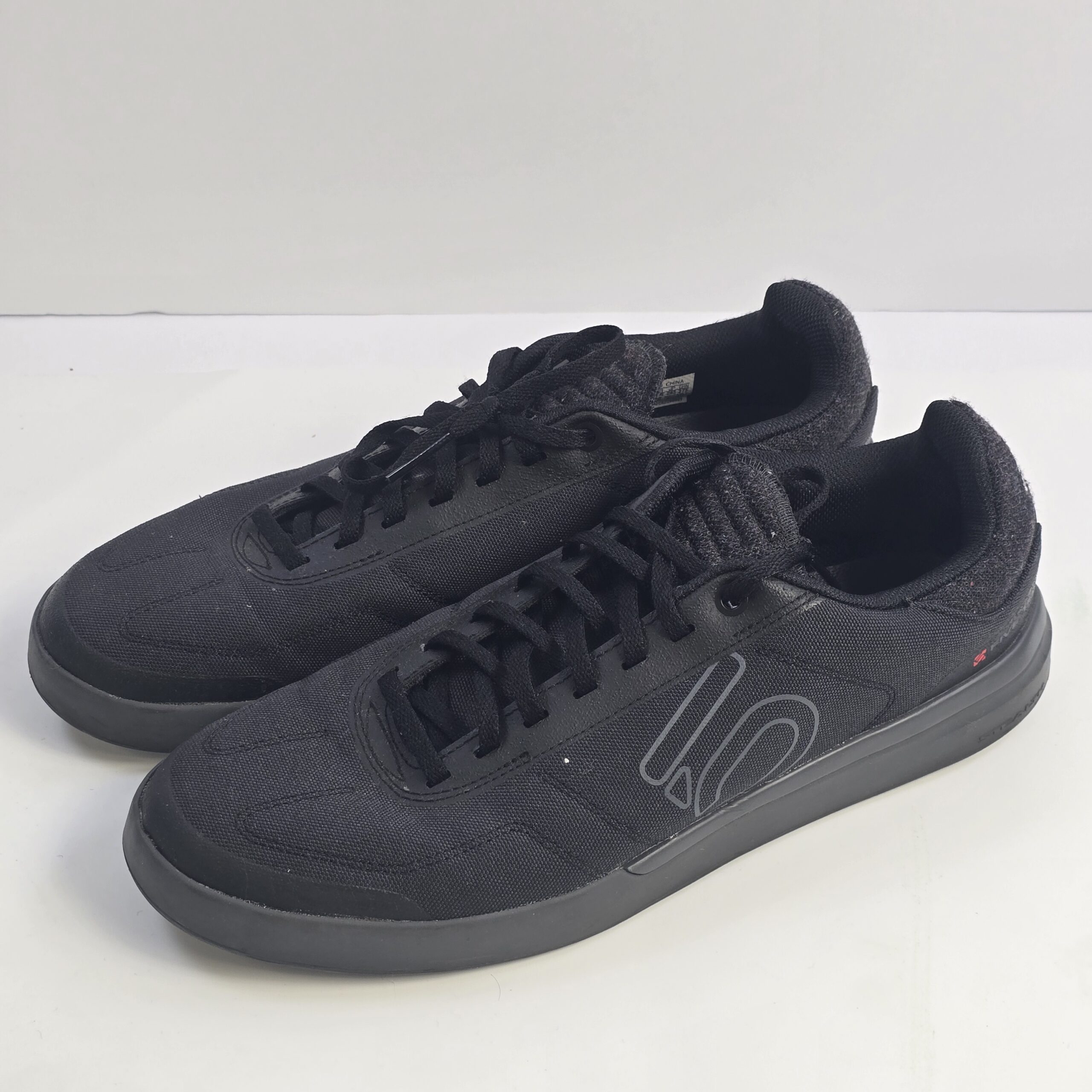 These black athletic sneakers from Five Ten are designed for active use and are commonly worn for cycling, skateboarding, or urban activities.