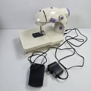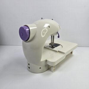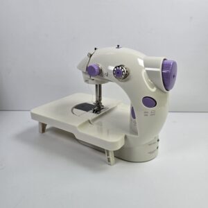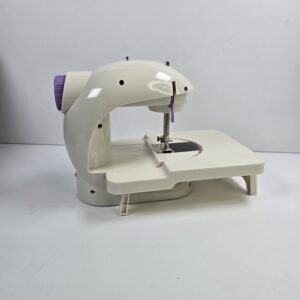 This is a compact mini sewing machine designed for basic stitching tasks and commonly used for light home crafts. It features user-friendly controls suitable for everyday sewing projects.