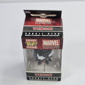 This Funko Pocket Pop! collectible keychain features the Marvel character Venom in a stylized bobble-head design. Commonly used for personal accessories or display, it is designed for fans and collectors of Marvel memorabilia.