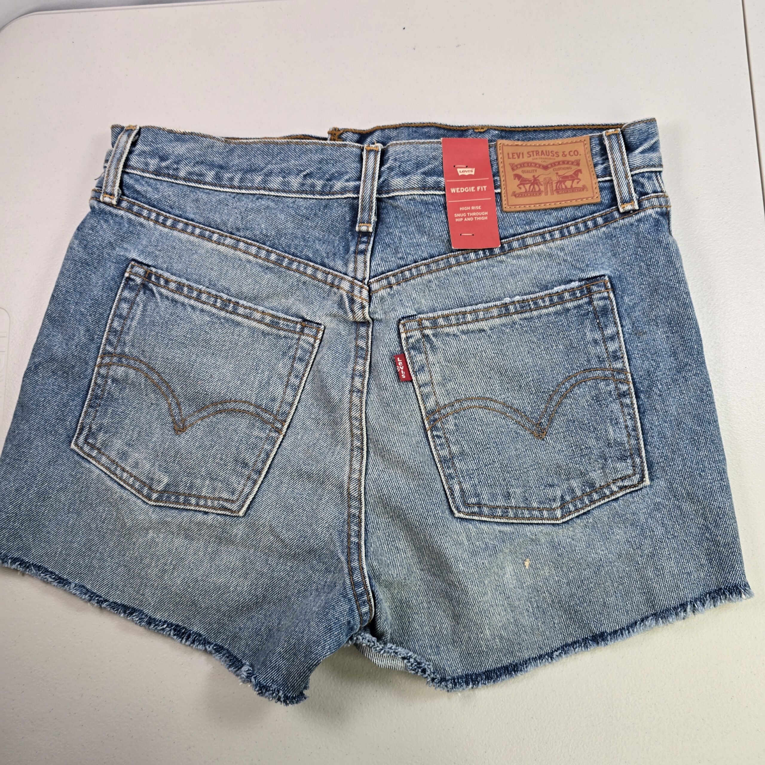 Levi’s Wedgie Fit denim shorts designed with a high-rise waist and button fly.