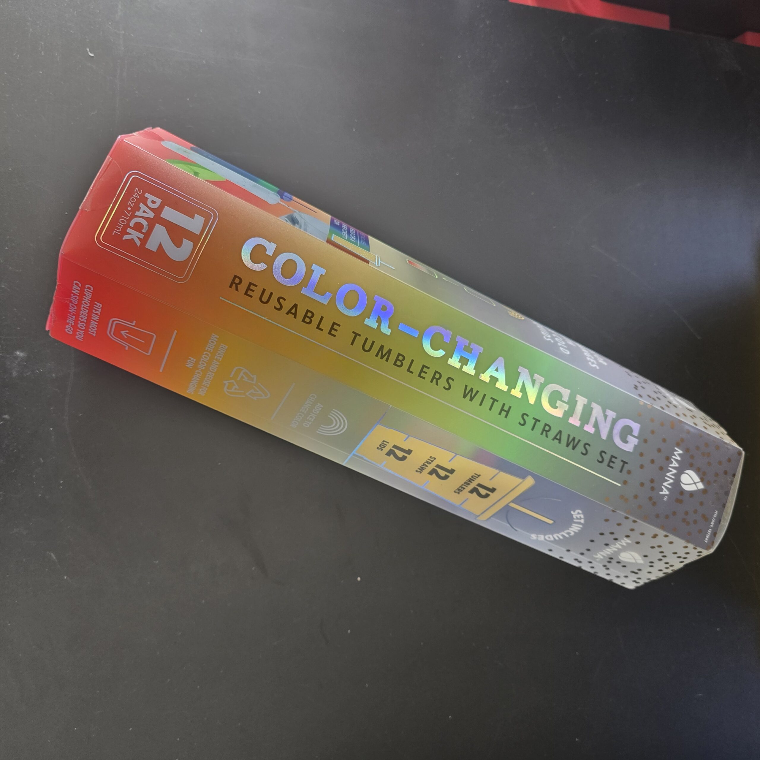 This drinkware set includes tumblers designed for cold beverages and commonly used in casual dining or on-the-go settings. The tumblers feature a color-changing design and are reusable for multiple uses.