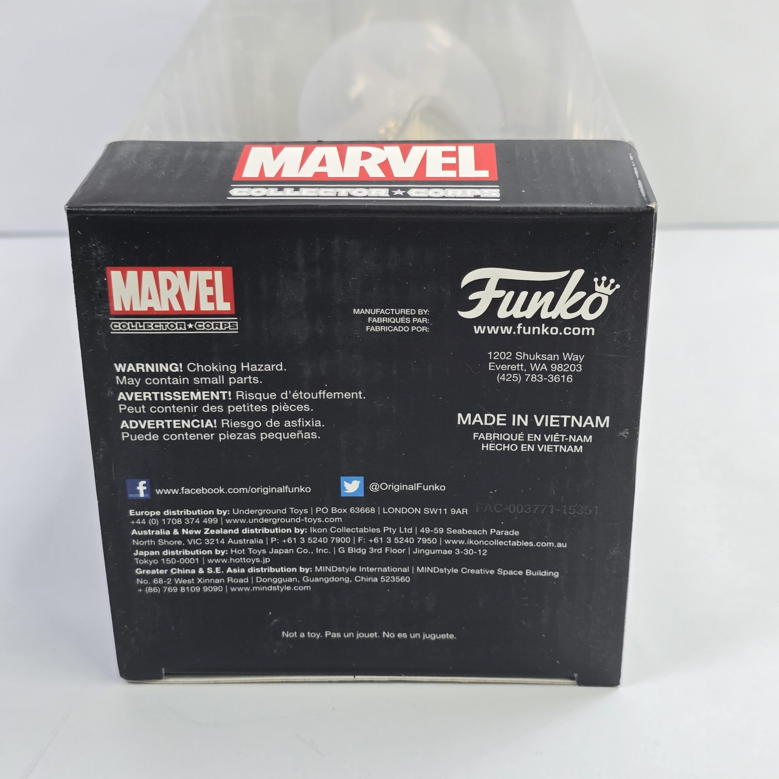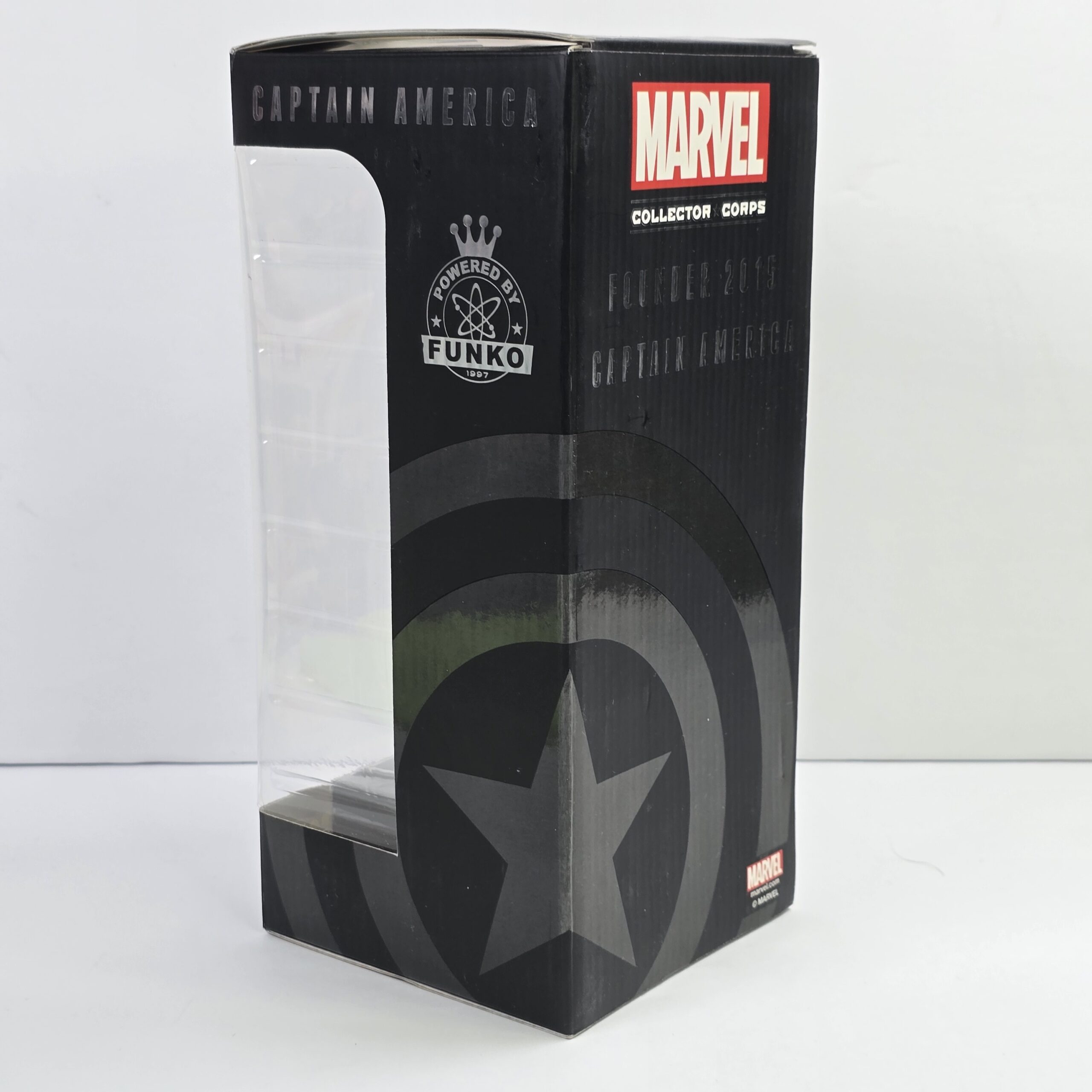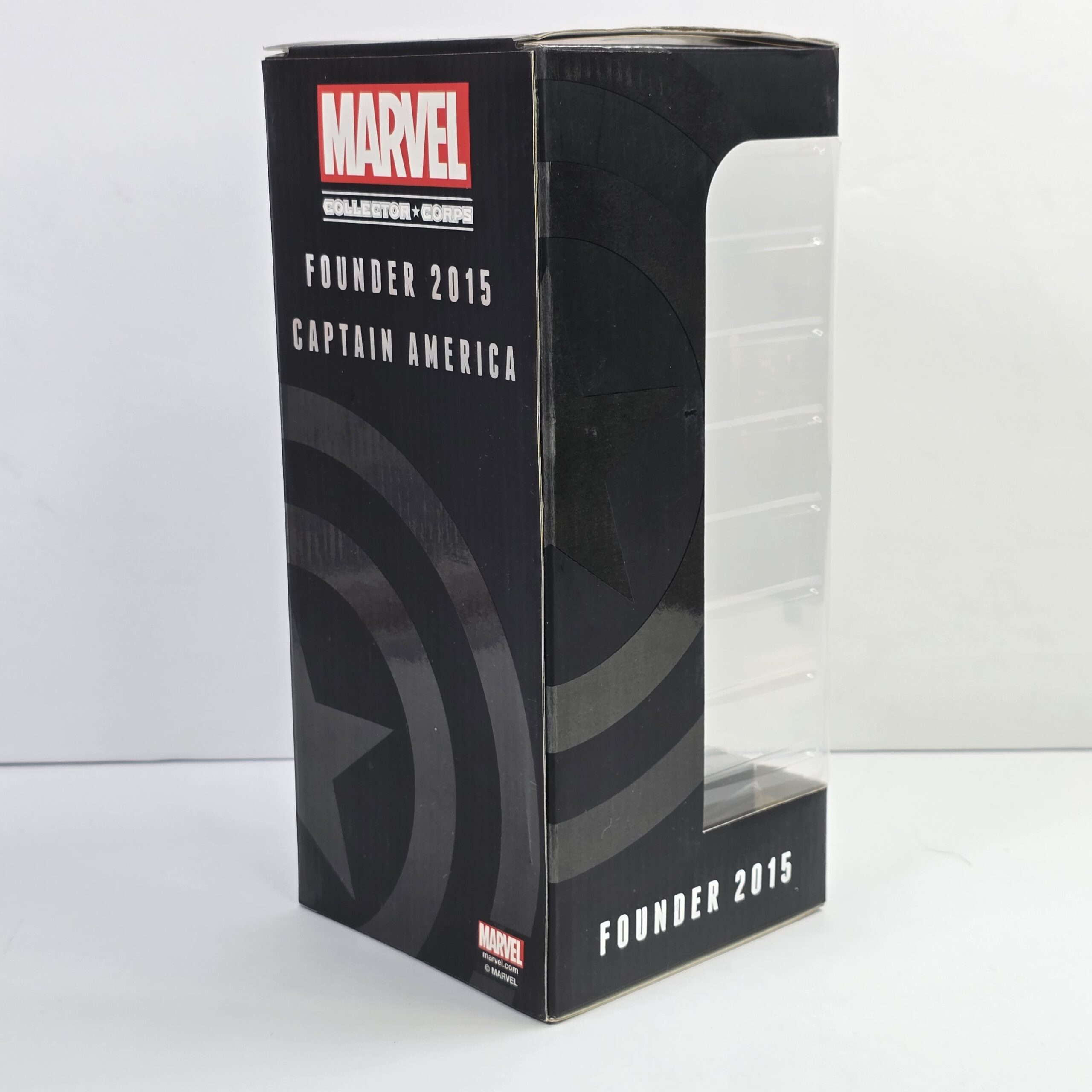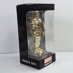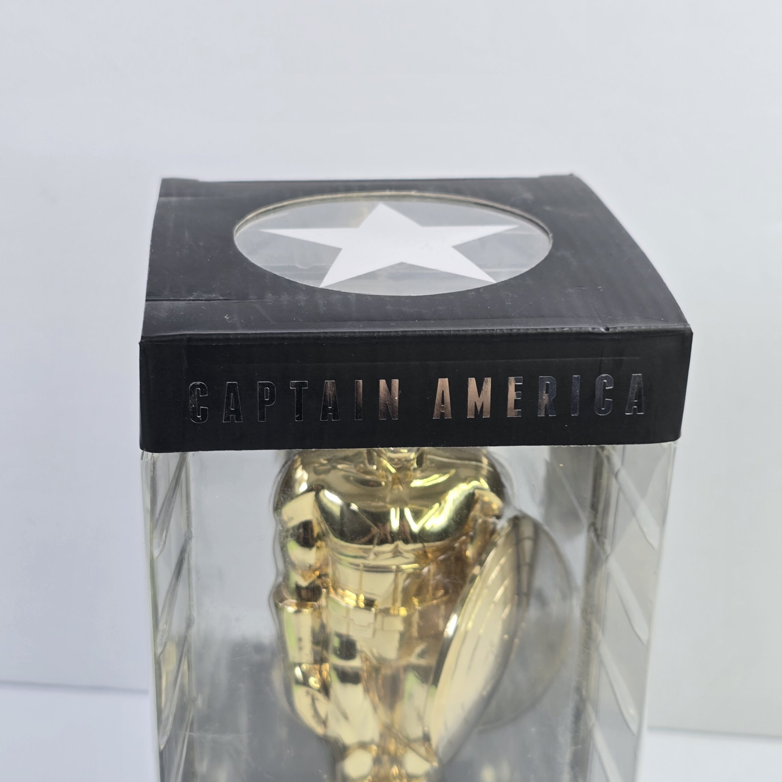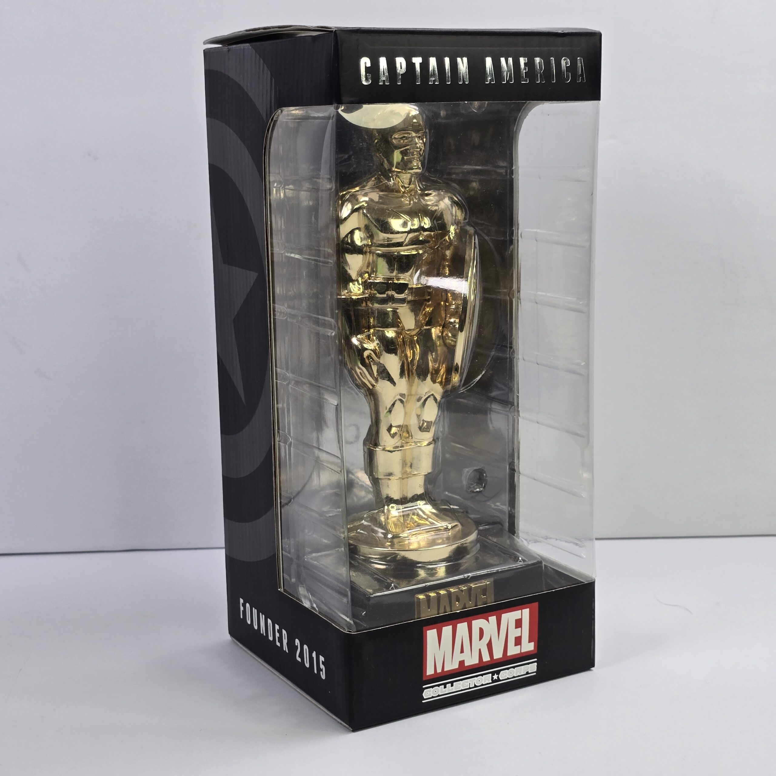 OVERVIEW This is a Marvel Captain America Gold Trophy Collectible Figure, presented in its original display packaging. The trophy is labeled as ‘Founder 2015’ and showcases Captain America in a polished gold-tone finish.