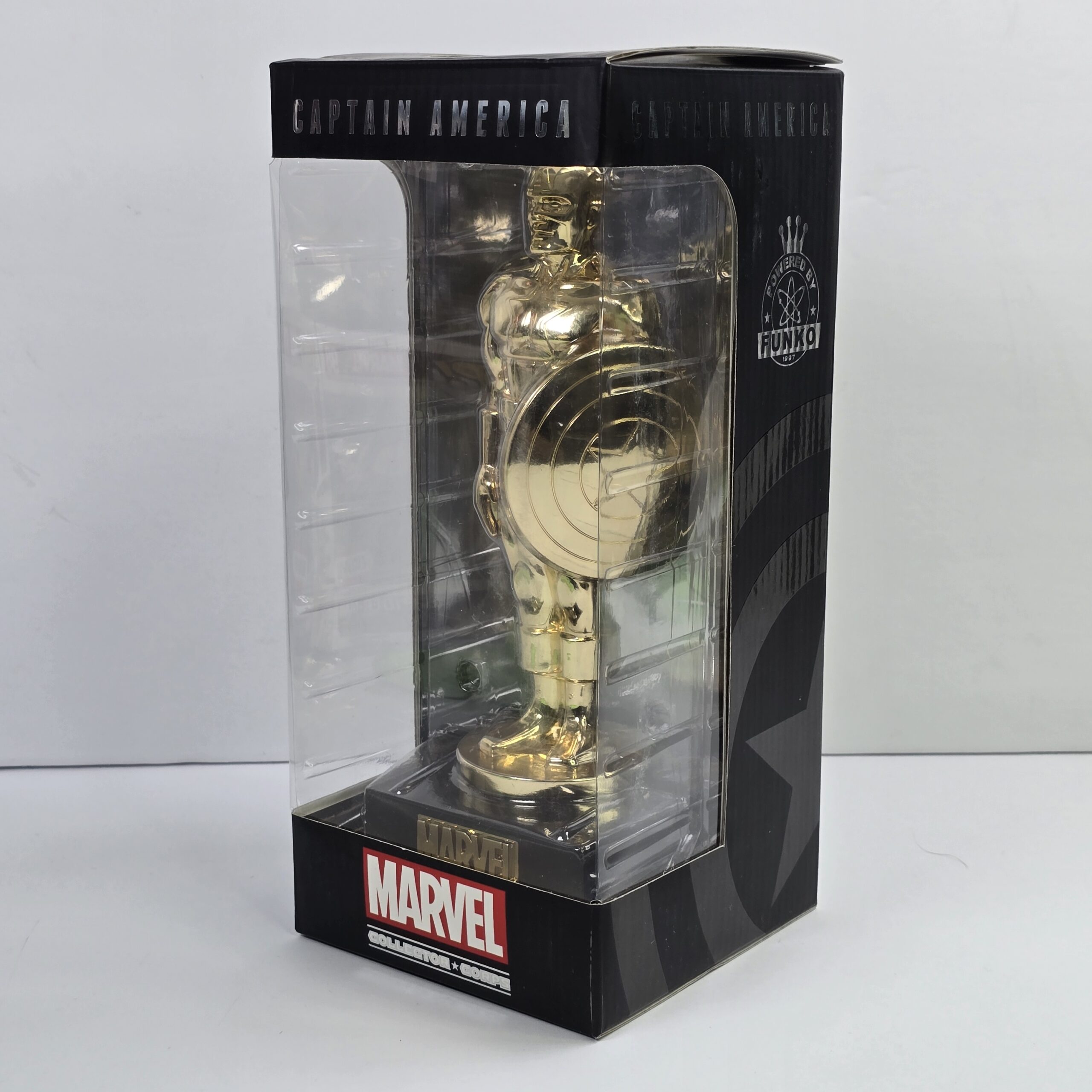 - Notable trait: Stylized Captain America figure in a metallic gold finish