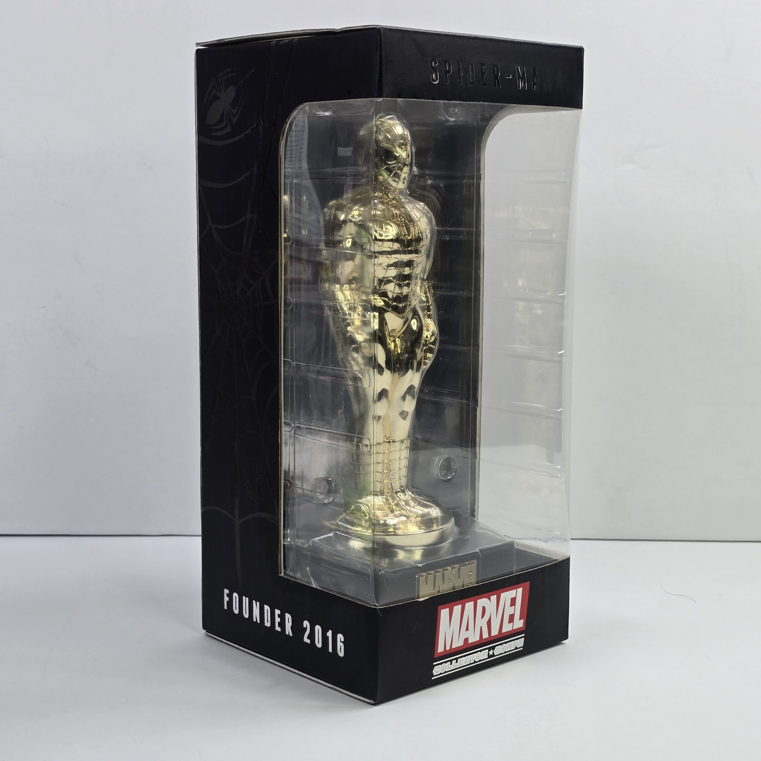 OVERVIEW This is a Marvel Spider-Man gold collectible figure designed for fans and collectors. The figure is packaged in a display box highlighting its metallic gold appearance.
