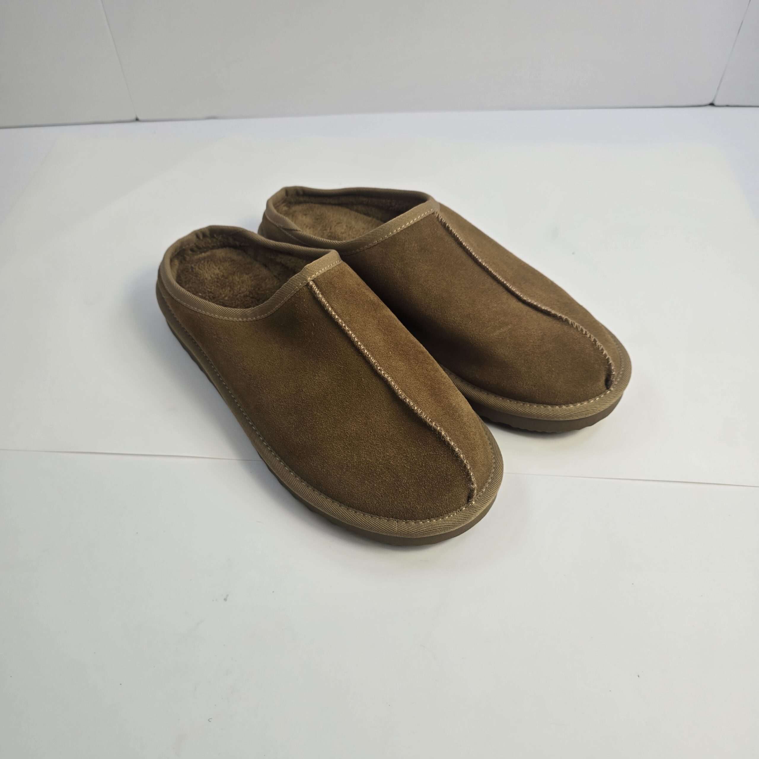 Men’s Brown Suede Slip-On Slippers Indoor Shoes Fleece Lined