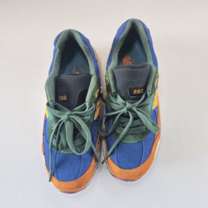 The New Balance 992 is a versatile sneaker blending retro design with running-inspired comfort. This lightly used pair features a colorful palette suitable for casual and lifestyle wear.