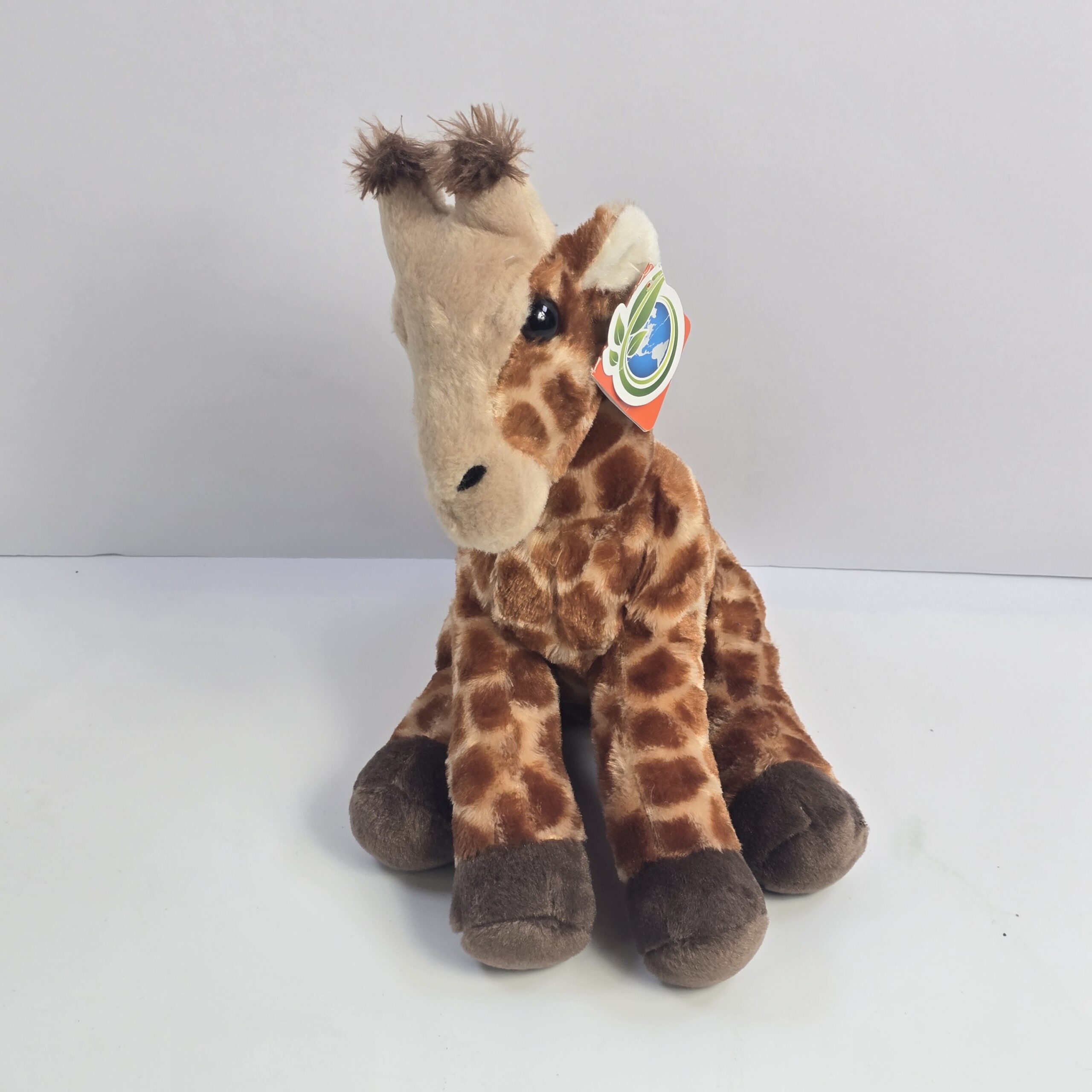 This plush giraffe toy is a soft stuffed animal designed for play or display. It is commonly used as a comforting toy or decorative piece for children and animal lovers.