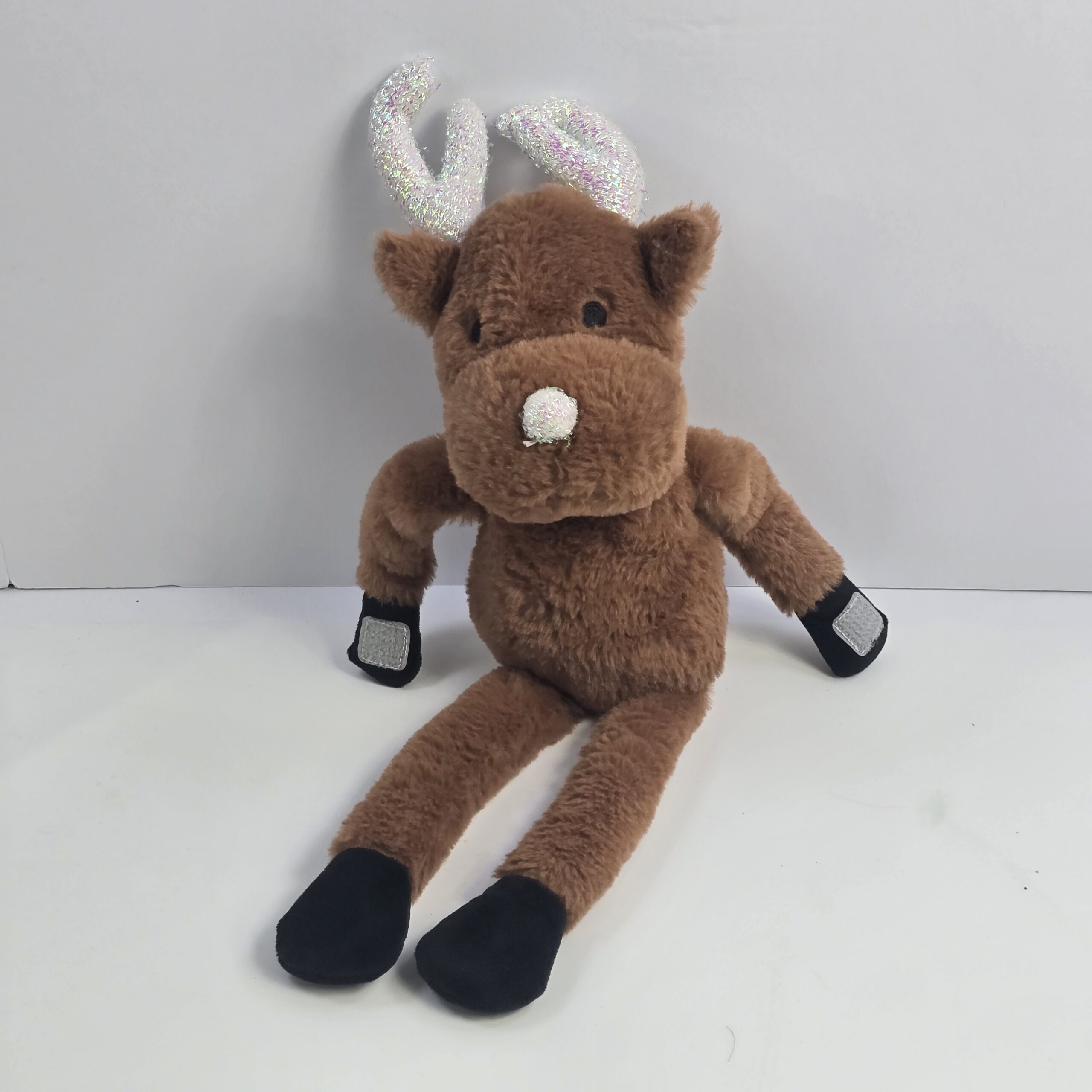 This plush reindeer toy is a soft stuffed animal designed for decorative or play purposes. Its festive design makes it commonly used as a holiday-themed collectible or gift.