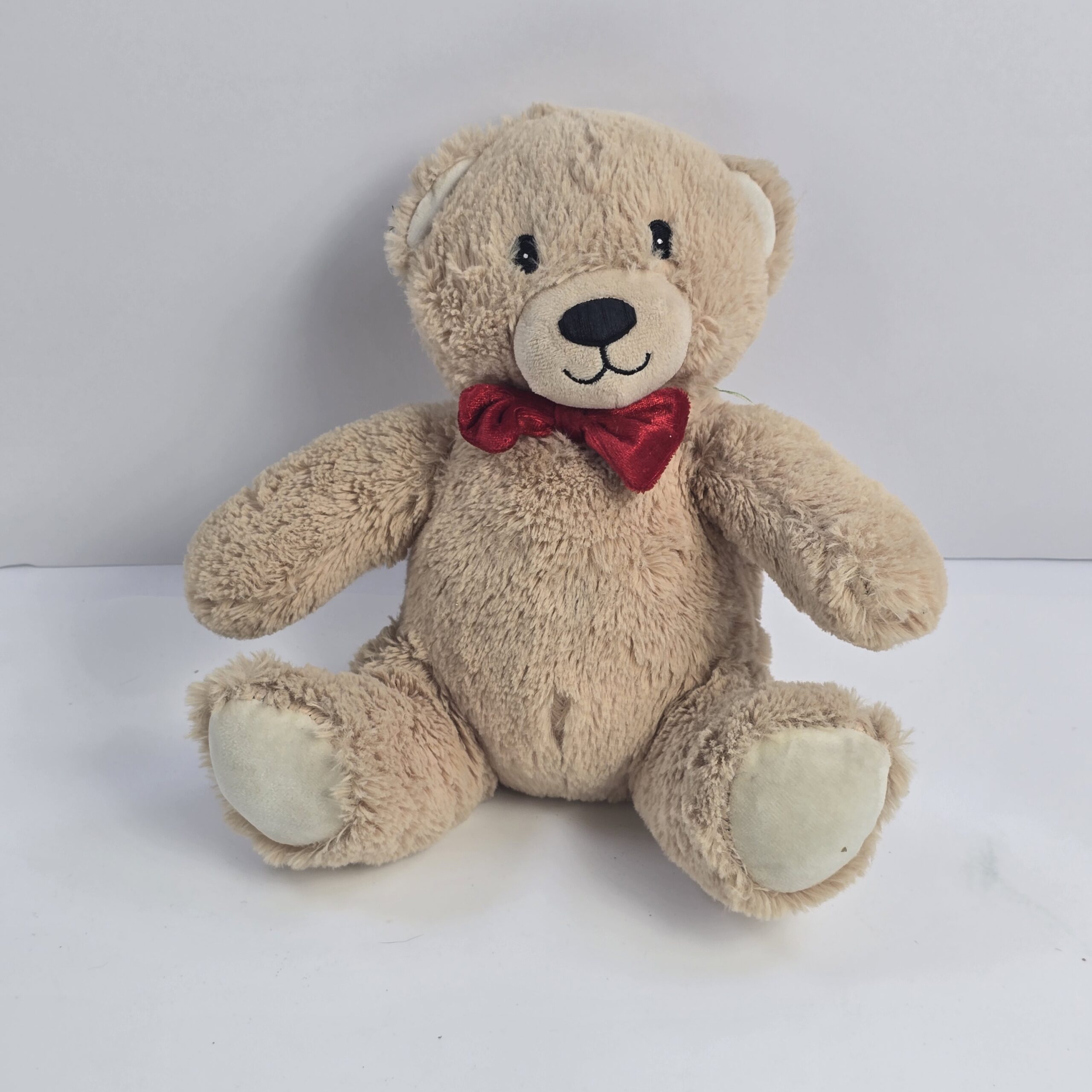Plush Teddy Bear Stuffed Animal Toy Beige with Red Bow