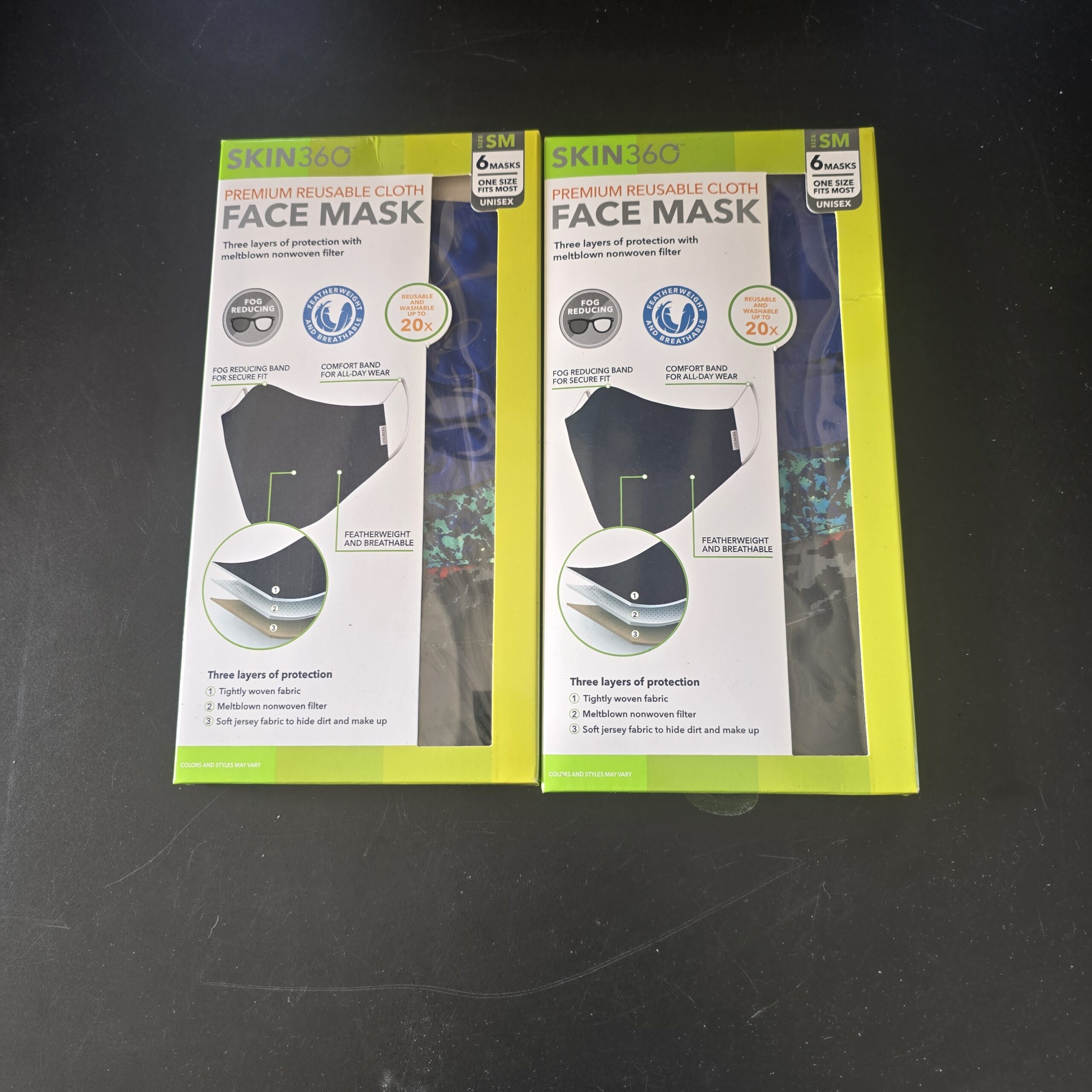 Skin360 Reusable Cloth Face Mask Black Unisex Washable 3-Layer 6 Pack