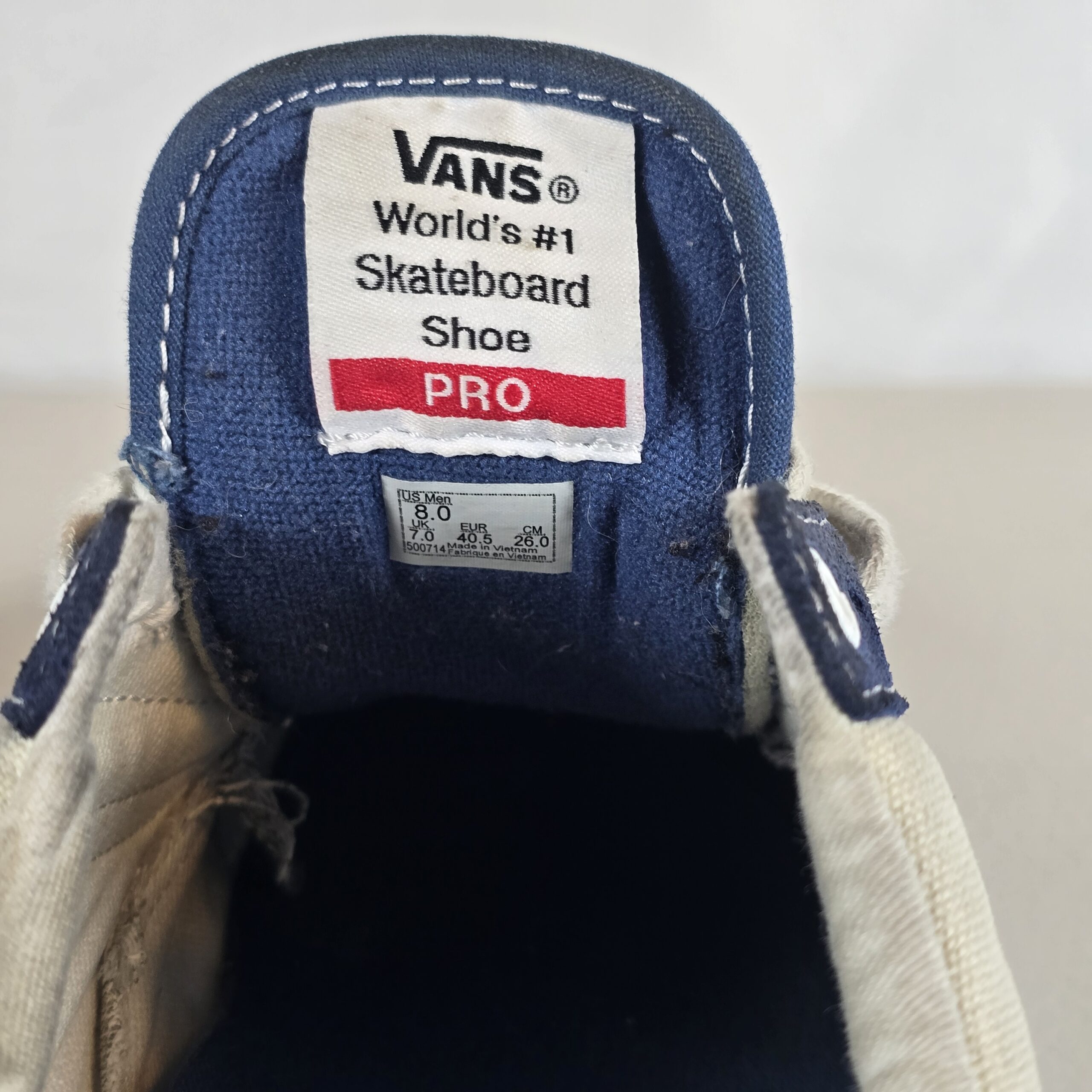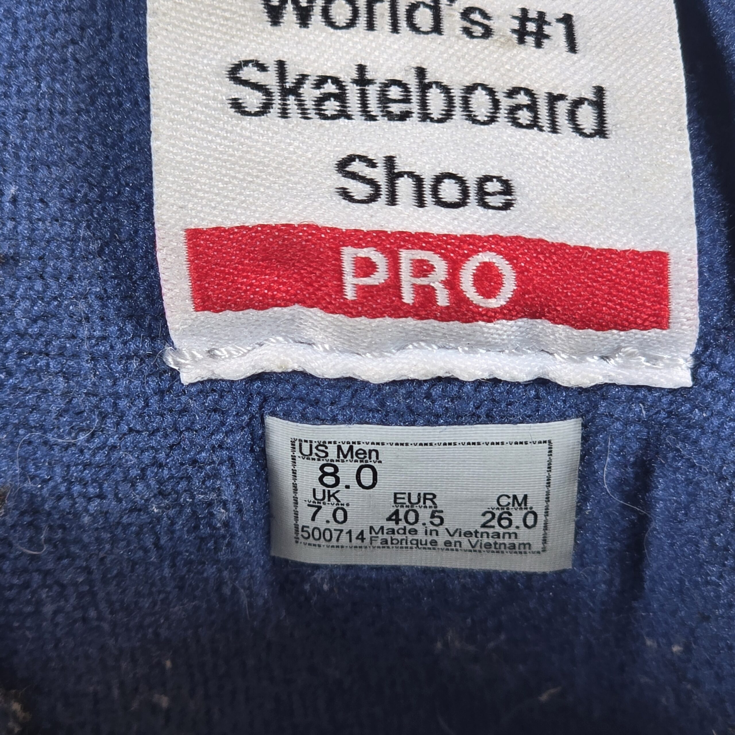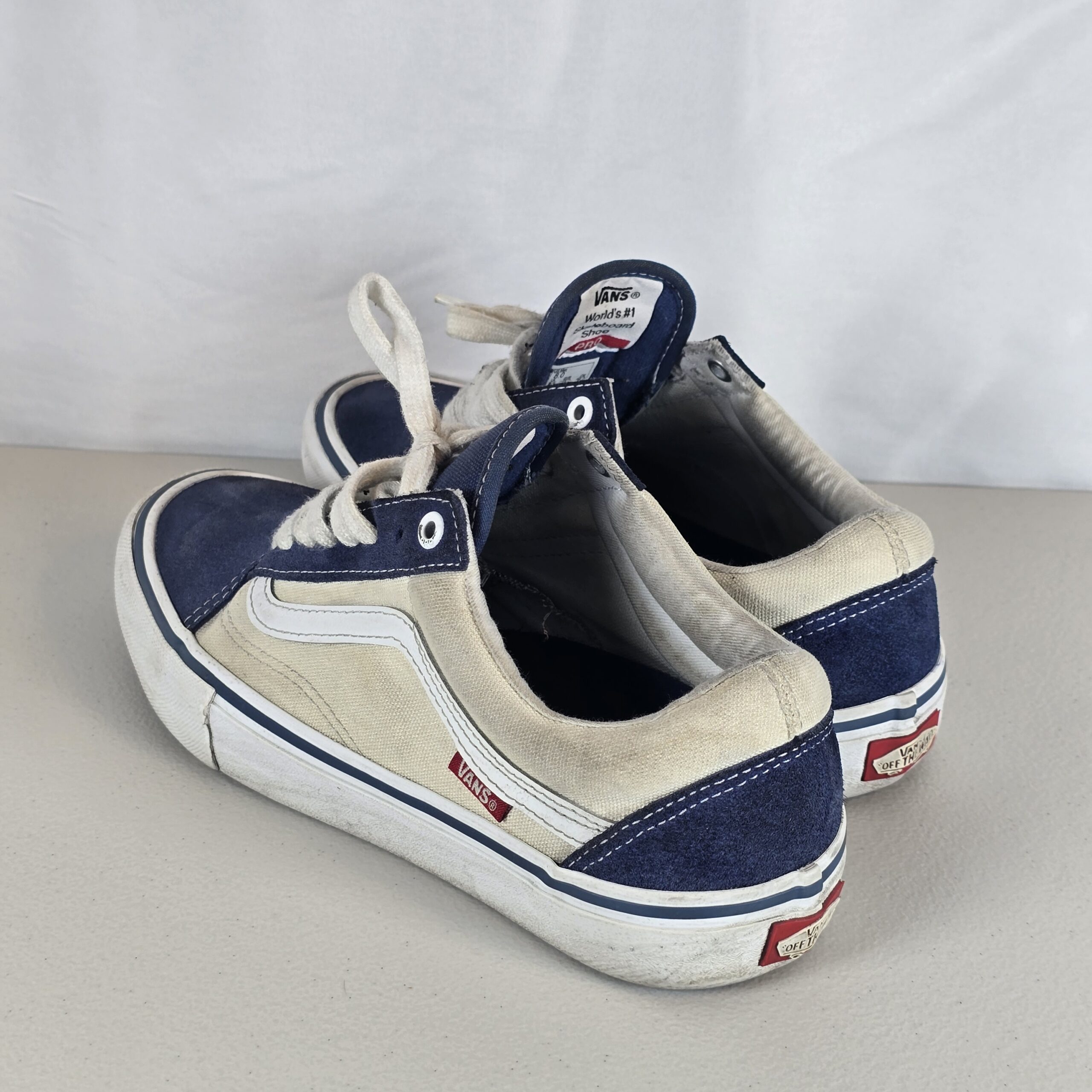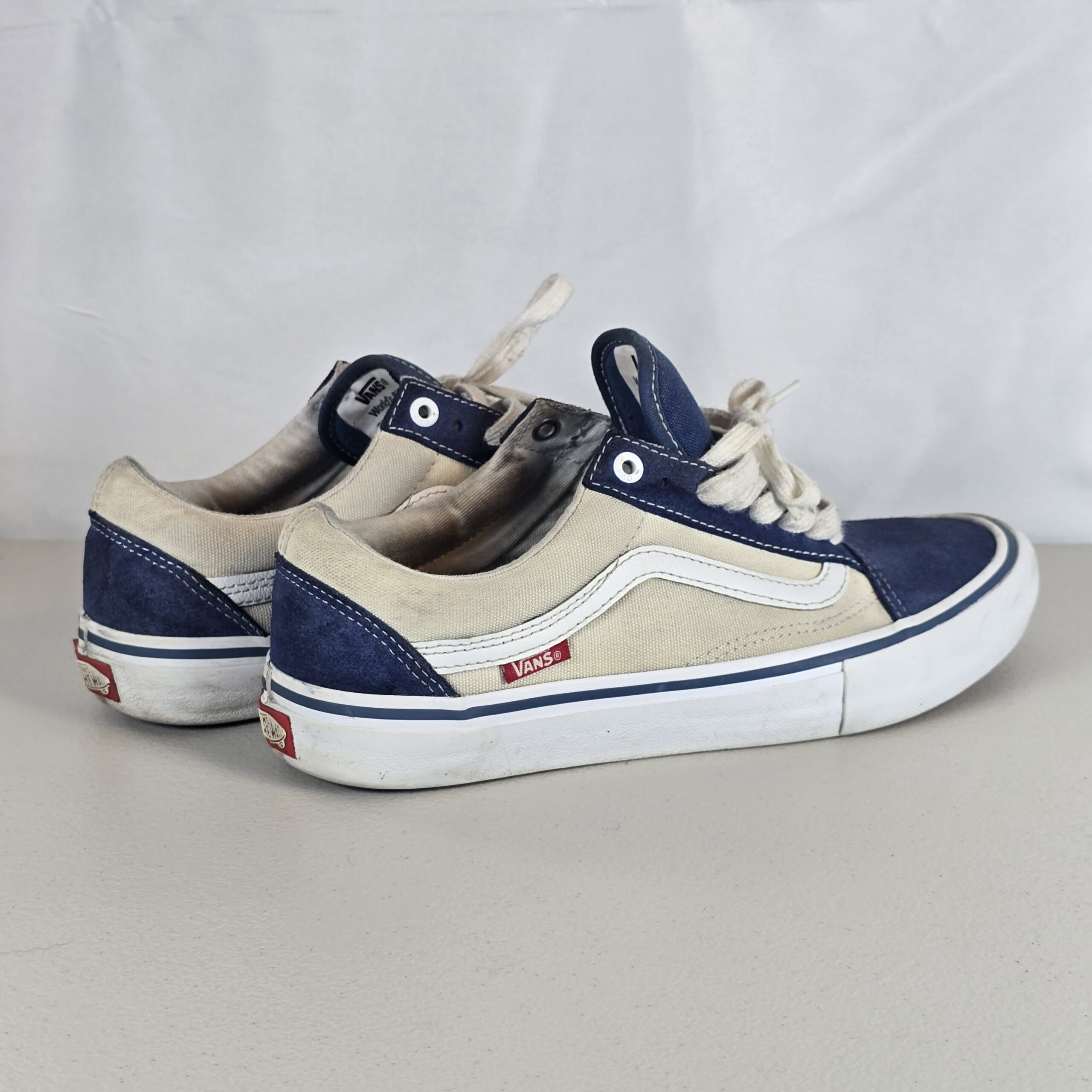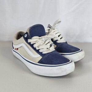 These Vans Old Skool Pro skate shoes feature a classic low-top silhouette designed for skateboarding and everyday wear, with reinforced construction typical of the Vans Pro line.