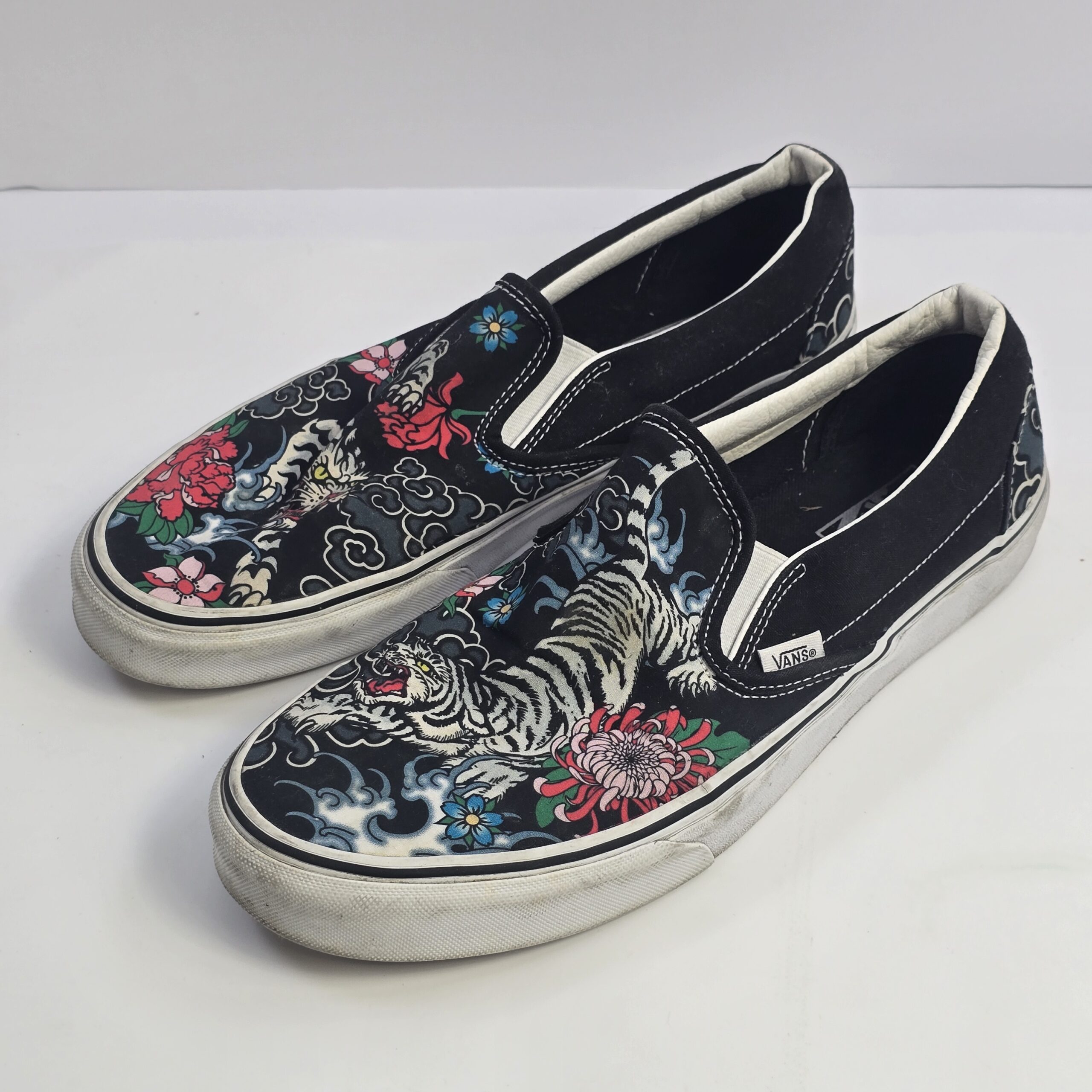 Be the first to review “Vans Slip-On Canvas Sneakers Men’s Black Multicolor Graphic Tiger Floral” Cancel reply